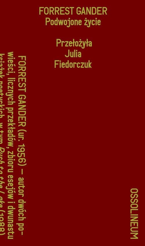 Forrest Gander zaprzęga literaturę do działań, które poezja zwykła odkładać na później. Podsłuchuje świat – naturę oraz ludzi – i oddaje mu głos. Jak zauważa Julia Fiedorczuk w posłowiu do "Podwojonego życia", „polifoniczny charakter twórczości Gandera odzwierciedla jego przeświadczenie, że na każdą tożsamość składają się liczne zjawiska, procesy i byty. Komunikacja nie jest przymiotem wyłącznie ludzkim, w każdym zakątku ziemi toczą się rozmowy, każda wypowiedź – także wypowiedź poetycka – jest częścią planetarnego chóru”. W swoich wierszach Gander koncentruje się na tym, co wiąże jednostkę z innymi i ze światem, przygląda się głęboko splątanym relacjom oraz niekończącemu się procesowi powstawania i rozpadu, narodzin, miłości i śmierci. Jako literaturoznawca wraca do źródeł indyjskiej literatury sangam, jako geolog adaptuje język nauki do poruszającego, intymnego dialogu. O autorze Forrest Gander (ur. 1956) – autor dwóch powieści, licznych przekładów, zbioru esejów i dwunastu książek poetyckich, w tym "Rush to the Lake" (1988), "Science & Steepleflower" (1998), "Eye Against Eye" (2005), wyróżnionego Nagrodą Pulitzera tomu "Bądź blisko" (2018; wydanie polskie 2020) oraz "Knot" (2022). Jest laureatem wielu ważnych nagród literackich. Mieszka w Kalifornii.