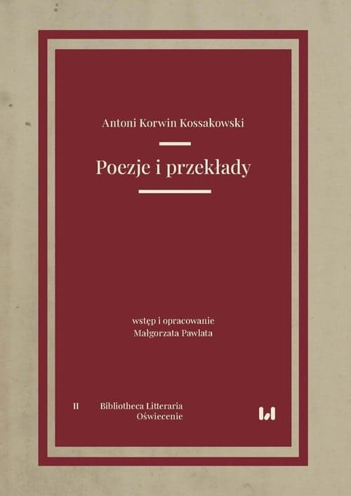Bibliotheca Litteraria ma na celu upowszechnienie w zintegrowanej formie dokonań edytorskich łódzkiego środowiska naukowego, zwłaszcza polonistycznego. Służy uprzystępnieniu możliwie szerokiemu gronu czytelników dzieł ważnych z punktu widzenia dziejów literatury polskiej. Edycje ukazują się w czterech podseriach: Staropolska, Oświecenie, Wiek XIX oraz Wieki XX i XXI. * Tom zawiera zarówno wyrosłe z tradycji barokowej rymowania, jak i utrzymane w innych estetykach utwory autora: oryginalne, tłumaczone oraz parafrazowane, wśród których szczególne miejsce zajmuje przekład komedii Katarzyny II Obmanszczik (Oszukaniec). Obecne […] wydanie krytyczne utworów Kossakowskiego wzbogaca naszą wiedzę o kulturze literackiej, zwłaszcza czasów stanisławowskich. Z recenzji prof. dr hab. Krystyny Maksimowicz To jedyna edycja naukowa poświęcona utworom poetyckim i przekładom dokonanym przez Antoniego Korwina Kossakowskiego. Publikacja wprowadza teksty źródłowe do szerokiego obiegu czytelniczego, łączy bowiem walory naukowe z popularnonaukowym podejściem. Zgromadzony materiał i sposób jego krytycznego opracowania należy postrzegać jako przedsięwzięcie, które nie tylko wzbogaca wiedzę o epoce, lecz także stanowi inspirację do dalszych badań nad twórczością Moliwdy zarówno dla historyków literatury, jak i badaczy zajmujących się ogólnie pojętym piśmiennictwem epoki oświecenia. Książka stanowi podstawę źródłową dla przekładoznawców czy historyków teatru. Z recenzji dr hab. Aleksandry Norkowskiej