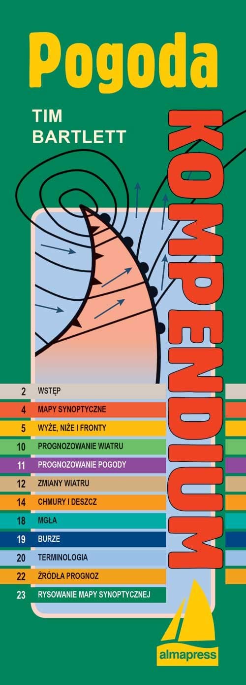 Pogoda ma ogromny wpływ na bezpieczeństwo i jakość żeglugi. Znajomość praw nią rządzących, a także umiejętność jej przewidywania są niezbędne każdemu żeglarzowi. Książka omawia bardzo przejrzyście i skrótowo najważniejsze zjawiska związane z pogodą, tłumaczy jak rysować mapę synoptyczną, gdzie szukać źródeł prognoz pogody i jak samemu ją prognozować. Nieduży format, spiralna oprawa i laminowane strony sprawiają, że książka może być zawsze pod ręką w kokpicie.