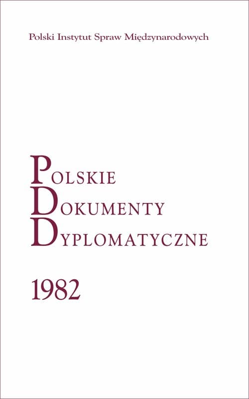 Tom PDD 1982 jest 32. tomem opublikowanym w ramach serii Polskie Dokumenty Dyplomatyczne. Zawarto w nim 537 dokumentów ukazujących polską politykę zagraniczną w 1982 r. Na działania polskiej dyplomacji w dokumentowanym okresie największy wpływ miały wielopłaszczyznowe następstwa decyzji o wprowadzeniu stanu wojennego. Krytyczne reakcje państw zachodnich i nałożone sankcje w oczywisty sposób negatywnie wpłynęły na stan relacji PRL z Zachodem. Podejmowane przez władze w Warszawie próby przełamania izolacji i poprawy pozycji międzynarodowej nie przyniosły znaczących rezultatów. Strona polska starała się także przeciwdziałać wszelkim próbom umiędzynarodowienia sprawy polskiej i omawiania jej na forach wielostronnych (ONZ, KBWE, MOP). W kontaktach z ZSRR i krajami socjalistycznymi starano się zapewniać o kontrolowaniu sytuacji wewnętrznej i opanowaniu zjawisk kryzysowych związanych z działalnością opozycji i NSZZ „Solidarność”. W relacjach wewnątrz bloku wschodniego uwagę zwracają także jednodniowe wizyty I sekretarza KC PZPR Wojciecha Jaruzelskiego w ZSRR i europejskich krajach socjalistycznych, których celem była odbudowa zaufania „bratnich krajów” do władz w Warszawie. Wspólnym elementem polityki wobec państw Zachodu i Wschodu były starania o uzyskanie możliwie jak największej pomocy gospodarczej i finansowej, która poprawiłaby sytuację w ogarniętym kryzysem kraju i pozwoliłaby uniknąć formalnego ogłoszenia niewypłacalności. W działaniach propagandowych koncentrowano się na przeciwdziałaniu aktywności informacyjnej państw zachodnich oraz rozpowszechniano tezę o konieczności wprowadzenia stanu wojennego, propagując przy tym narrację o suwerennym podejmowaniu przez socjalistyczną Polskę grudniowych decyzji. Wiele uwagi w zakresie działań propagandowych poświęcano również próbom ograniczania działań przedstawicieli środowisk polonijnych oraz niwelowania aktywności przebywających na Zachodzie działaczy „Solidarności”. Starano się również minimalizować znaczenie wszelkiego rodzaju manifestacji organizowanych przed polskimi placówkami zagranicznymi. Istotnym elementem działań dyplomatycznych były także relacje ze Stolicą Apostolską, którym szczególny charakter nadawały osobiste zaangażowanie papieża Jana Pawła II (wymiana listów z premierem Jaruzelskim) oraz kontakty watykańskiej dyplomacji i aktywność polskiego Episkopatu. Na działania polskiej dyplomacji wpływały także ówczesne konflikty i kryzysy międzynarodowe. Wiosną 1982 r. brytyjsko-argentyński spór o Falklandy/Malwiny przerodził się w otwartą wojnę, z kolei na Bliskim Wschodzie trwała wojna iracko-irańska, a dodatkowo rozpoczęła się operacja wojskowa Izraela na obszarze Libanu, która zagrażała bezpośrednio polskiej ambasadzie w Bejrucie. Istotnym elementem ówczesnej polskiej polityki zagranicznej były także zmiany kadrowe przeprowadzone w MSZ oraz cięcia budżetowe skutkujące likwidacją lub ograniczeniem działalności części placówek zagranicznych. Zdecydowaną większość zamieszczonych w tomie dokumentów stanowią źródła dotychczas niepublikowane, pochodzące przede wszystkim z Archiwum Ministerstwa Spraw Zagranicznych i Archiwum Akt Nowych. Lekturę tomu ułatwiają rozbudowane indeksy osobowy i rzeczowy oraz wstęp i wykaz skrótów. W tomie zamieszczono również aneksy, w tym wykaz zawieranych przez PRL umów międzynarodowych oraz schemat odzwierciedlający strukturę MSZ w 1982 r.
