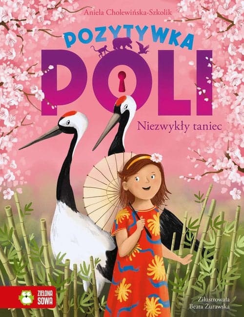 Pola z Lilką i grupą taneczną pani Jamali wyjeżdżają na wycieczkę do Japonii! Poznają tam Maiko, wnuczkę właścicieli hoteliku „Dwa żurawie”. Maiko marzy o nauce baletu, ale jej babcia nie chce się na to zgodzić, dopóki dziewczynka nie zostanie mistrzynią w tradycyjnym tańcu jiutamai. Maiko przygotowuje się więc do występu. W międzyczasie spróbuje się dowiedzieć, dlaczego para mandżurskich żurawi, która zamieszkiwała łąkę za hotelem, ostatnio nie chce przylatywać. Maiko martwi się, że hotel straci przez to swoją główną atrakcję… Pola pomoże Maiko rozwikłać zagadkę żurawi. Równocześnie w prawdziwym świecie szkoła baletowa pani Heleny przystępuje do projektu „W kilka kroków dookoła świata”. Dziewczynki mają za zadanie przygotować narodowe tańce oraz ciekawostki o danym kraju. Pola i Lilka bez wahania wybierają Japonię! Oprócz tego Polę pochłania zagadka złocistej nici, którą zostawił dla niej tajemniczy handlarz, ofiarodawca pozytywki… Nowa seria Anieli Cholewińskiej-Szkolik, autorki lubianej „Misi i jej małych pacjentów”, przeznaczona dla nieco starszych czytelników! Tym razem główną bohaterką jest Pola – ciepła i sympatyczna dziewczynka, która pasjonuje się tańcem i podróżami. Uwielbia poznawać nowe osoby i bardzo kocha zwierzęta. Uczestniczymy zarówno w codziennym życiu Poli, które w znacznej mierze wypełniają lekcje baletu, jak i w egzotycznych przygodach. W każdym tomie dziewczynka przenosi się za pomocą magicznej pozytywki w różne miejsca na świecie, gdzie będzie poznawać nowych przyjaciół i ich kulturę.