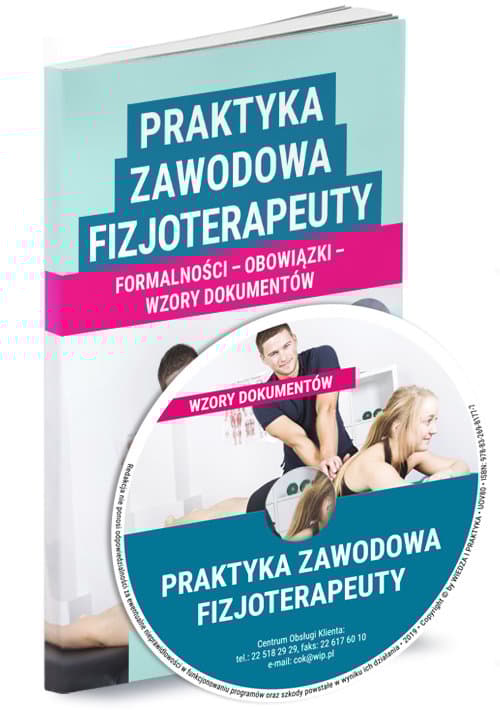 Ustawa przesądziła, że zawód fizjoterapeuty jest samodzielnym zawodem medycznym, wprowadziła standardy prawne wykonywania zawodu, katalog wymaganych kompetencji fizjoterapeuty, a także – po kilku dekadach oczekiwania - konieczność zdania przez osobę świadczącą usługi państwowego egzaminu. Fizjoterapeuci do 31 października 2019 r. zyskali czas na decyzję, w jakiej formie zamierzają dalej wykonywać swój zawód – zarejestrować podmiot leczniczy czy założyć praktykę fizjoterapeutyczną. Ta korzystna zmiana przepisów jest realizacją postulatów środowiska. Na płycie CD znajdziesz następujące wzory dokumentów: Ramowy program praktyki zawodowej realizowanej w ramach kształcenia w zakresie fizjoterapii; Dziennik praktyki zawodowej realizowanej w ramach kształcenia w zakresie fizjoterapii; Świadectwo złożenia państwowego egzaminu fizjoterapeutycznego; Zaświadczenie o zdaniu egzaminu ze znajomości języka polskiego; Karta specjalizacji w dziedzinie fizjoterapii; Dyplom specjalisty w dziedzinie fizjoterapii; Przykładowy zakres zadań na stanowisku fizjoterapeuta; Szczegółowy wykaz czynności zawodowych fizjoterapeuty; Umowa z fizjoterapeutą; Ocena ryzyka na stanowisku fizjoterapeuty.