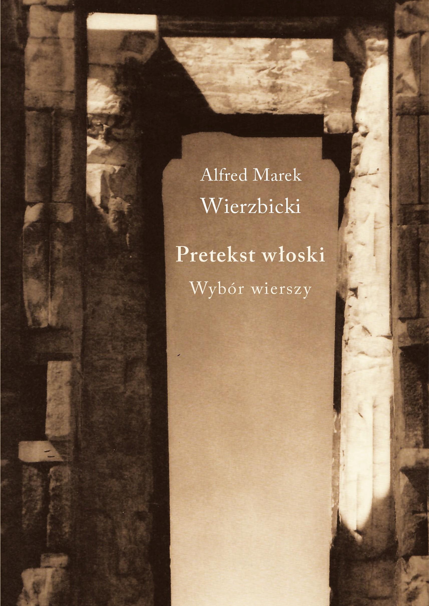 Pretekst włoski to wybór wierszy, który wyłonił się nagle jako coś w rodzaju półwyspu z kontynentu kilkunastu tomików opublikowanych przez Alfreda Marka Wierzbickiego w ciągu czterech dekad. Nie jest to reportaż z podróży, tematy włoskie stanowią inspirację, a czasem tylko pretekst do konstruowania świata poetyckiego. Cóż począć z takim nadmiarem gości kiedy przychodzisz ty i ty i jest wesoło jak podczas karnawału w Wenecji jeśli pomyliłem twarz przyjdź jeszcze raz (Zaproszenie)