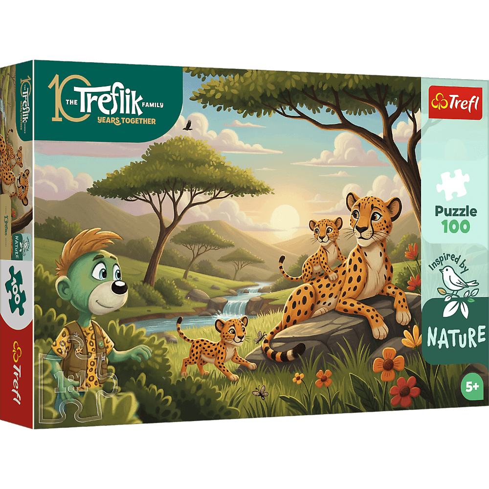 Gepardy to puzzle składające się z 100 elementów, zaprojektowane z myślą o małych fanach bajki Rodzina Treflików.