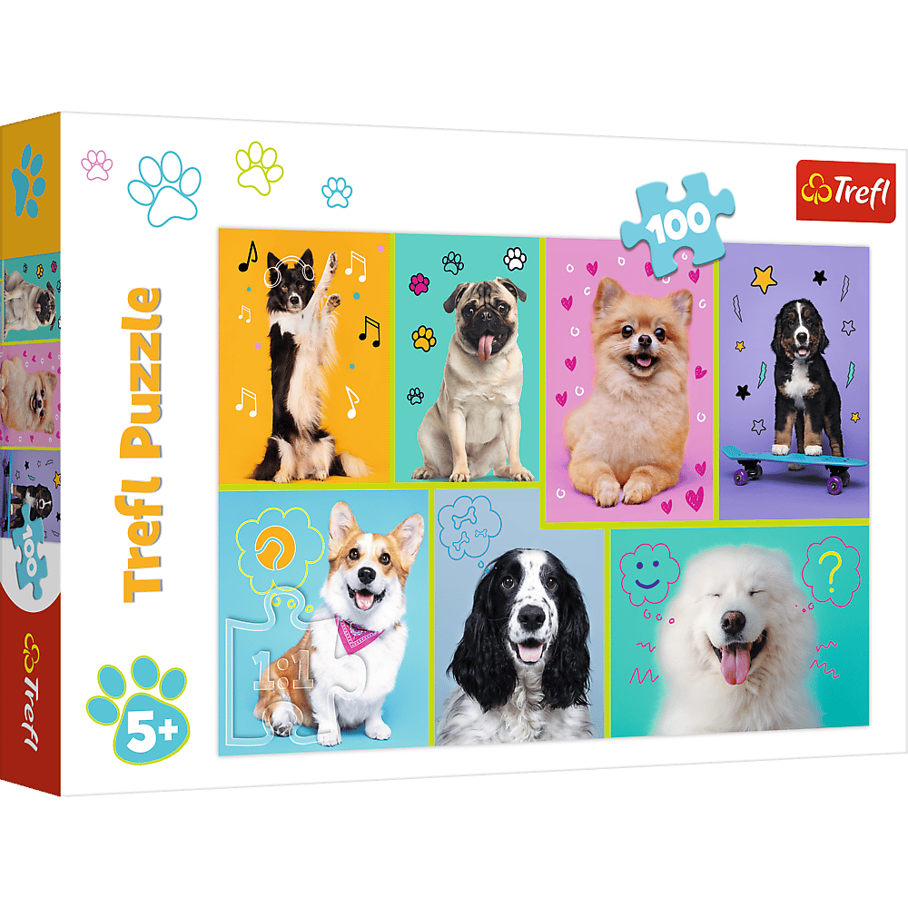 W świecie piesków to puzzle składające się z 100 elementów, zaprojektowane specjalnie z myślą o małych miłośnikach psiaków.
