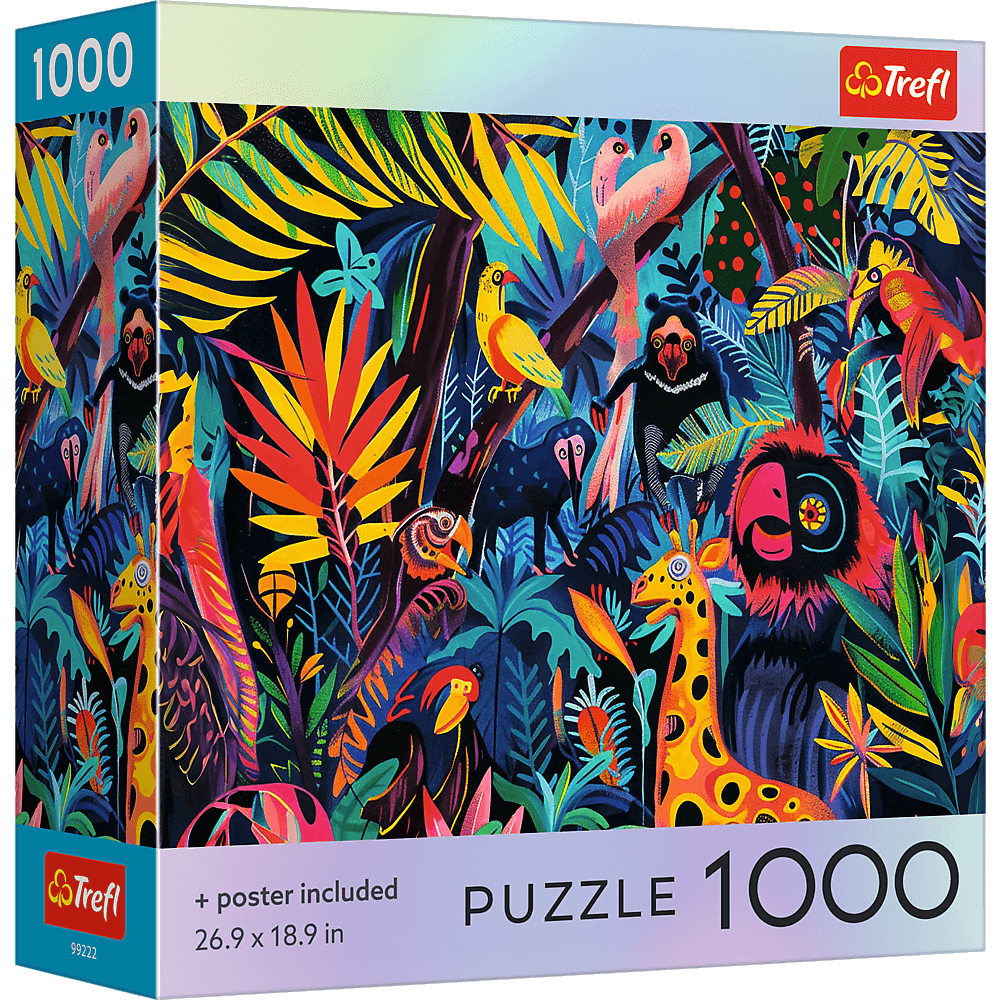 Wejdź do tętniącego życiem, pełnego kolorów świata ukrytego wśród liści i lian – In the Jungle to niezwykłe puzzle, które przenoszą Cię w sam środek dzikiej natury, przedstawionej w wyjątkowo artystyczny, abstrakcyjny sposób. To idealna propozycja dla miłośników sztuki i przyrody, którzy szukają czegoś więcej niż klasycznego krajobrazu. Układanie tych puzzli to czysta przyjemność. Po ich ułożeniu powstanie obraz o wymiarach 683x480 mm