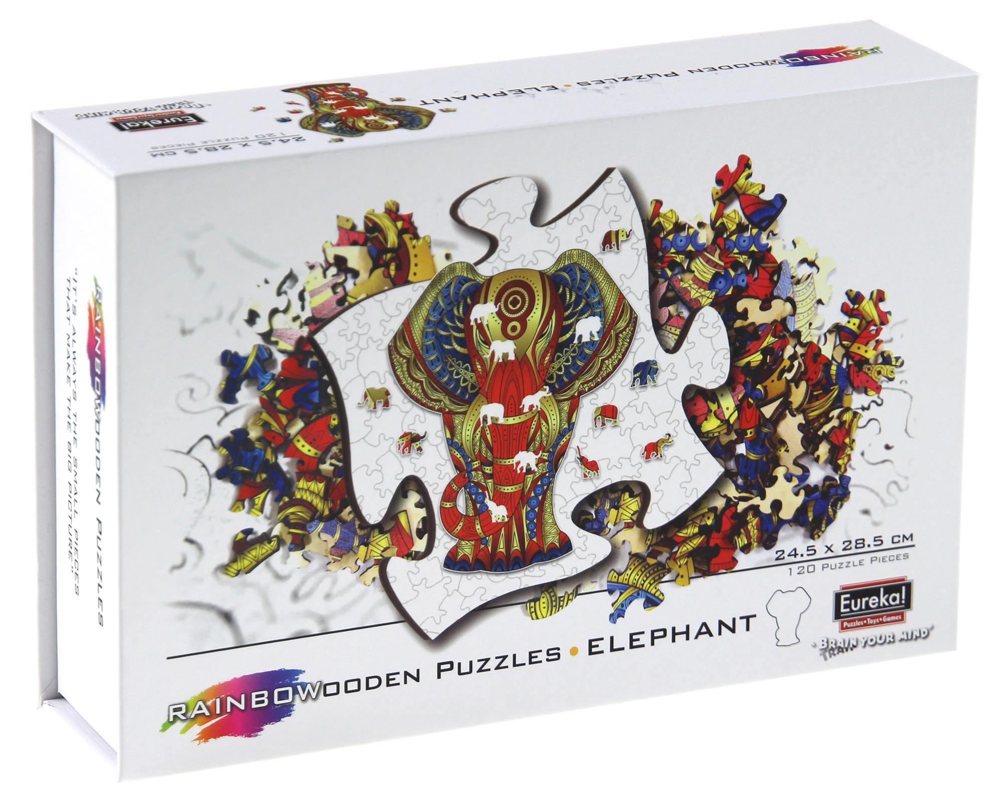Puzzle 120 drewniane kolorowe Słoń Gra