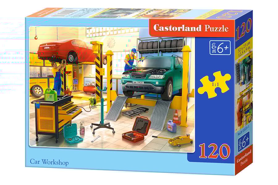 Szczegółowe informacje na temat gry Puzzle 120 Warsztat samochodowy B-13531-1