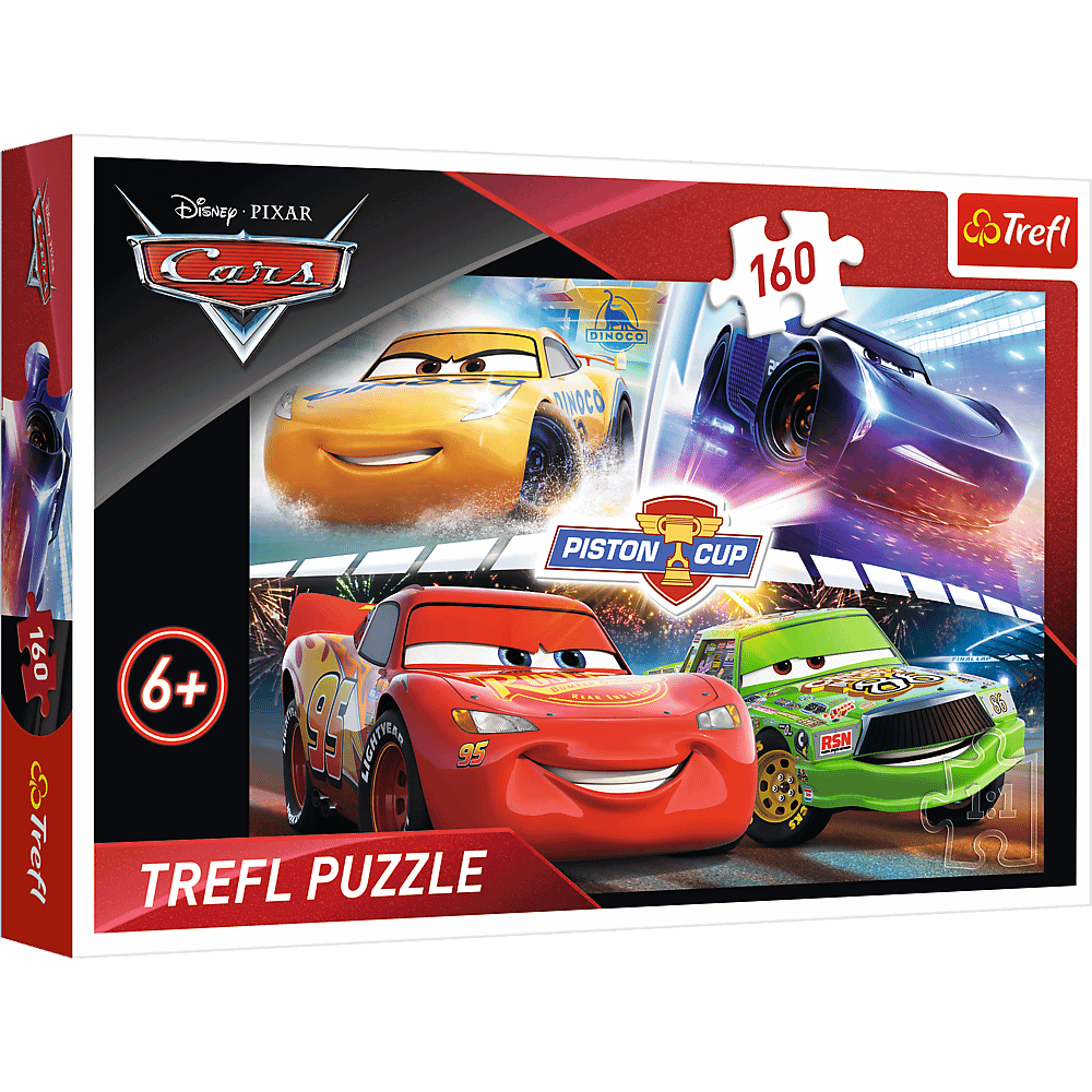 Puzzle 160 elementów z postaciami filmu animowanego Disneya Cars. Po ułożeniu powstanie obrazek o wymiarach 41 x 27.5 cm. Wysoką jakość, nasycenie kolorów i bezpieczeństwo układania zapewnia kalandrowany papier odbijający światło, pokryty ekologicznymi farbami spożywczymi. Puzzle oparte na licencji Disney Cars.