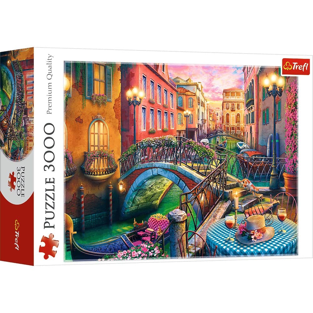 Puzzle Wieczór w Wenecji składające się z 3000 elementów przedstawiają wenecki kanał o zachodzie słońca.