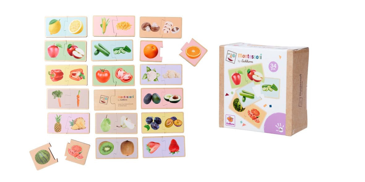 Dzięki tej atrakcyjnej drewnianej układance z serii Montessori Twoje dziecko pozna różne owoce i warzywa. Należy połączyć pasujące do siebie pary i poprawnie je nazwać. 34 elementy układanki wykonane są z realistycznych...