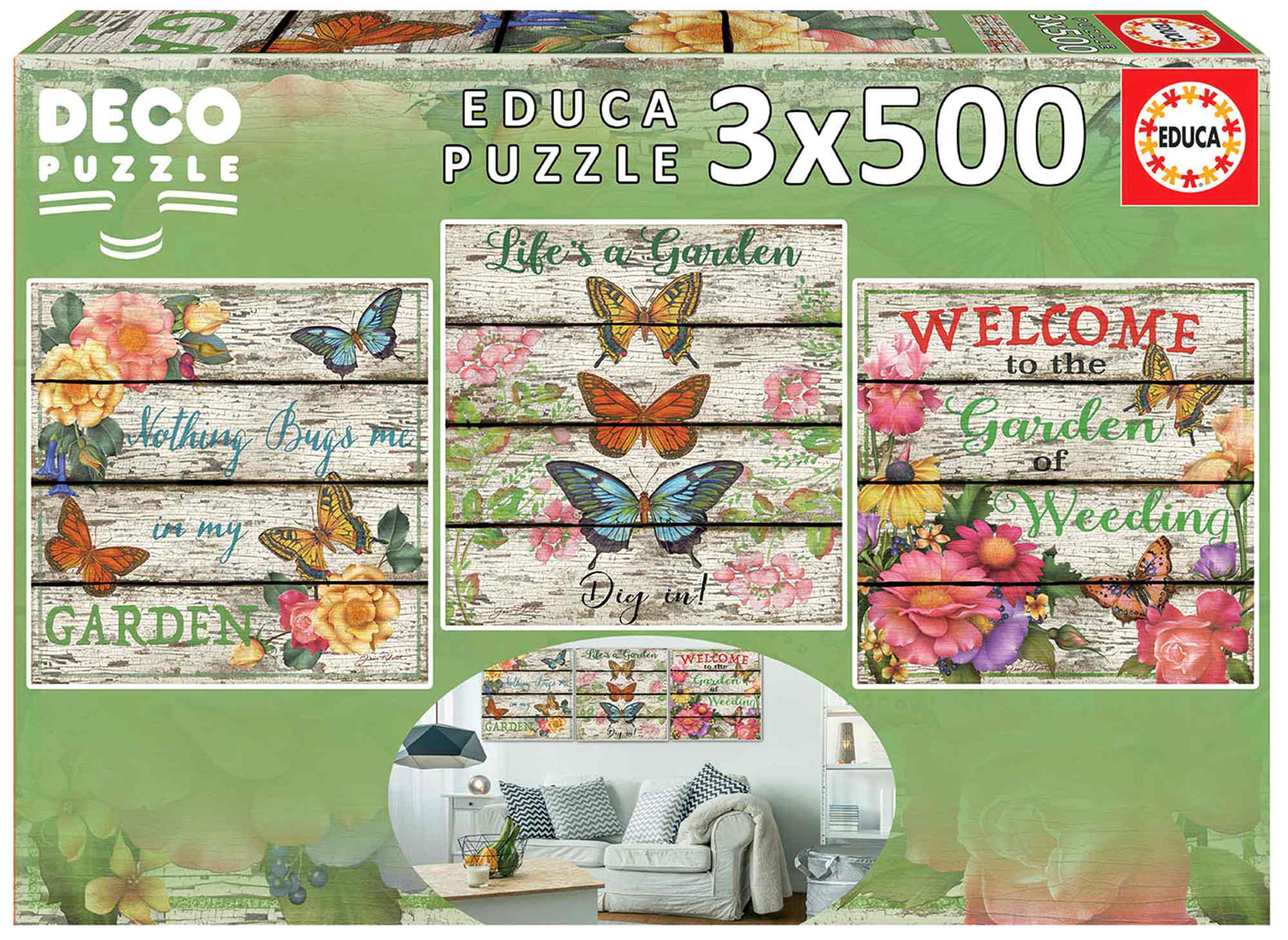 Puzzle 3x500 Kwiaty i Motyle 109639 Gra