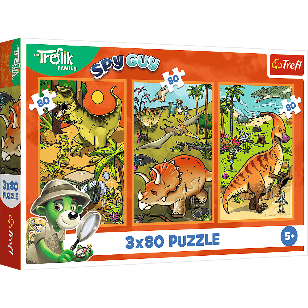 Szczegółowe informacje na temat gry Puzzle 3x80 Trefliki w świecie dinozaurów 34888