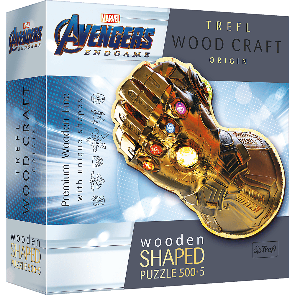 Puzzle 500+5 drewniane konturowe Rękawica Nieskończoności Marvel Heroes 20174 Gra
