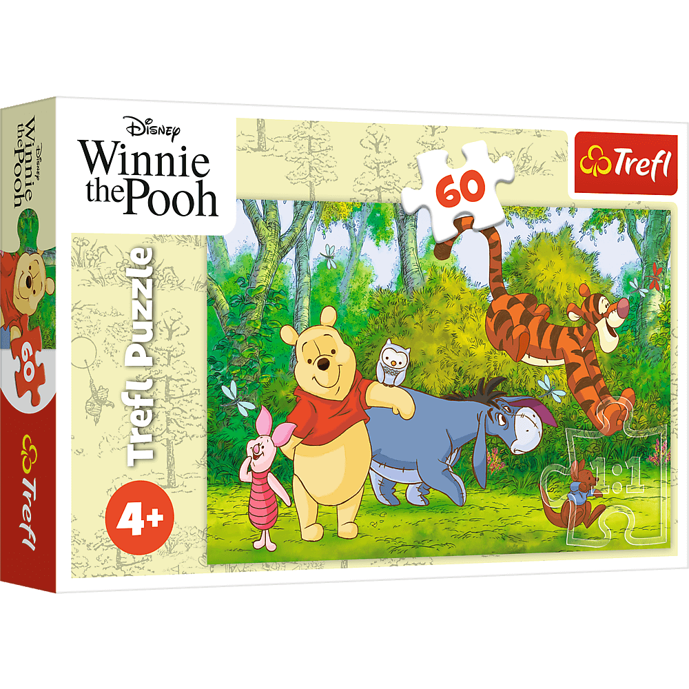 Smaczny miodek to puzzle składające się z 60 elementów, zaprojektowane z myślą o małych fanach bajki Kubuś Puchatek.
