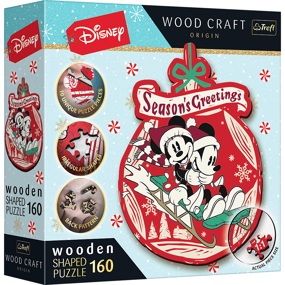 Puzzle160 drewniane konturowe Świąteczna przygoda Mickey i Minni 20192 Gra