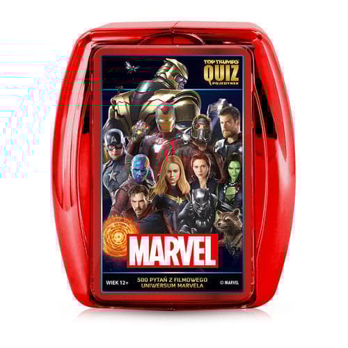Wybierz się na kolejną wycieczkę na pokładzie lotniskowca Helicarrier i sprawdź swoją wiedzę na temat Avengers, Guardians of the Galaxy, S.H.I.E.L.D. i dziesiątek innych postaci, które składają się na fantastyczny świat Marvel Cinematic w tej specjalnej edycji Top Trumps Quiz - Marvel! Dzięki 500 pytaniom, które dotyczą niezapomnianych cytatów i momentów z jednej z najbardziej udanych serii filmowych w historii, nie będziesz potrzebować Kamienia Czasu, aby podsumować wydarzenia z Wojny Secesyjnej, Czarnej Pantery, Doktora Strange, Age of Ultron czy bijącego rekordy Endgame. Pamiętasz, co Iron Man trzyma zapieczętowane w swojej piersi? Myślisz, że możesz powtórzyć zwrot, którego używa Czarna Wdowa, by uspokoić Hulka? Zaproś znajomych i rzuć im wyzwanie w tym fantastycznym quizie o ciekawostkach kinowych. Z pytaniami dotyczącymi Kapitana Marvela, Petera Quilla, Thora, Valkyrie, Gamory, Thanosa i wielu innych, możesz ponownie odwiedzić wszystkie swoje ulubione postacie i miejsca oraz udowodnić, że jesteś najwierniejszym fanem tej filmowej serii! Składający się z 500 pytań quiz to znakomita zabawa dla całej rodziny, zarówno jako szybka rozgrywka w podróży, jak i przy okazji dłuższego pojedynku w gronie fanów sagi.