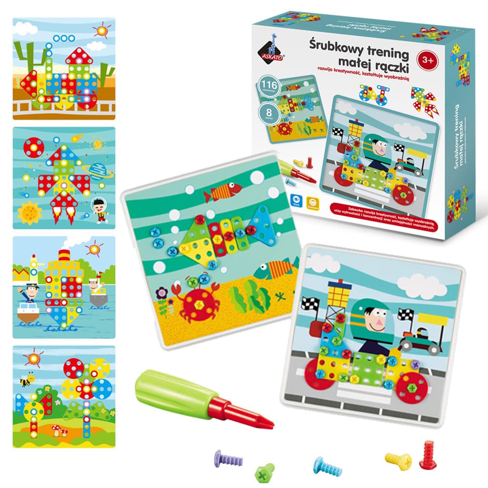 Mozaika jest propozycją dla dzieci w wieku przedszkolnym, dzięki której proces nauki pisania będzie łatwiejszy. Pisanie jest procesem wymagającym prawidłowej koordynacji wzrokowo-ruchowej oraz precyzji ruchów - to wszystko umożliwia śrubowy trening małej rączki. Funkcje te dzieci mogą rozwijać dzięki odpowiednim ćwiczeniom grafomotorycznym.