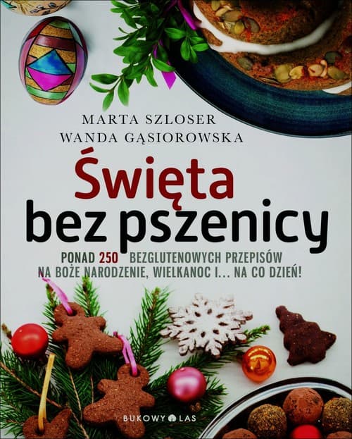 Kontynuacja bestsellerowej Kuchni polskiej bez pszenicy z przepisami na Boże Narodzenie i Wielkanoc. Dzięki tej książce na twoim bezglutenowym stole nie zabraknie żadnej świątecznej potrawy! Kalendarz aż puchnie od rozmaitych wyjątkowych okazji. Niektóre mają w naszym kraju długą tradycję, inne dopiero znajdują zwolenników. Autorki skupiły się na dwóch świętach, które z różnych względów są dla Polaków najważniejsze, a jednocześnie mają najbogatszą kulturę kulinarną. Uszka i pierogi, makowce, pierniki i serniki, baby, paschy, żurki i mazurki – wszystkie te smakołyki, i wiele innych obecnych na polskich świątecznych stołach, znajdziesz w niniejszej publikacji. Łącznie ponad 250 receptur na pyszne zupy, dania główne, przekąski, dodatki, chleby i bułki, ciasteczka, babeczki i desery, a także przydatne przepisy podstawowe, np. na ciasta pierogowe i naleśnikowe, majonezy, aromatyczne ekstrakty i polewy. Wszystko bez glutenu, cukru i szkodliwych E-dodatków, a często także bez nabiału lub w wersji wegańskiej. Z wykorzystaniem nowych zdrowych produktów, urozmaicających bezglutenową dietę, a także z ograniczeniem mało wartościowych, wysokowęglowodanowych oczyszczonych mąk oraz skrobi. Niektóre z zamieszczonych w książce potraw przyrządza się zazwyczaj tylko raz w roku (np. kutię, kompot wigilijny, paschę czy wielkanocnego baranka), ale większość doskonale wpasowuje się w menu całoroczne. Pieczywo, barszcze, pasztety, kluski, pierogi czy cała gama słodkości to propozycje uniwersalne. Z tych przepisów możesz z powodzeniem korzystać przez cały rok, nie tylko od święta! Ponad 250 starannie przygotowanych i wypróbowanych przepisów na dania tradycyjnie kojarzone z polskimi świętami i uroczystościami – oraz mnóstwo ciekawych nowych przepisów, do wykorzystania w codziennej kuchni domowej Kolejna książka dwóch polskich propagatorek bezglutenowego, zdrowego gotowania i odżywiania