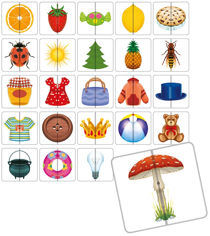 Symetria to aż 48 elementów, z których można ułożyć 24 kolorowe, duże obrazki. Jest to świetna układanka dla najmłodszych dzieci, które uczą się nowych słów i ćwiczą koordynację wzrokowo-ruchową. Trzy gry opisane w instrukcji sprawdzą się podczas zabawy z przedszkolakami • ćwiczy koncentrację i pamięć • rozwija zdolności manualne • wzbogaca słownictwo Zawrtość: 24 pary tafelków instrukcja Wiek 3-6 lat Liczba graczy 2-4