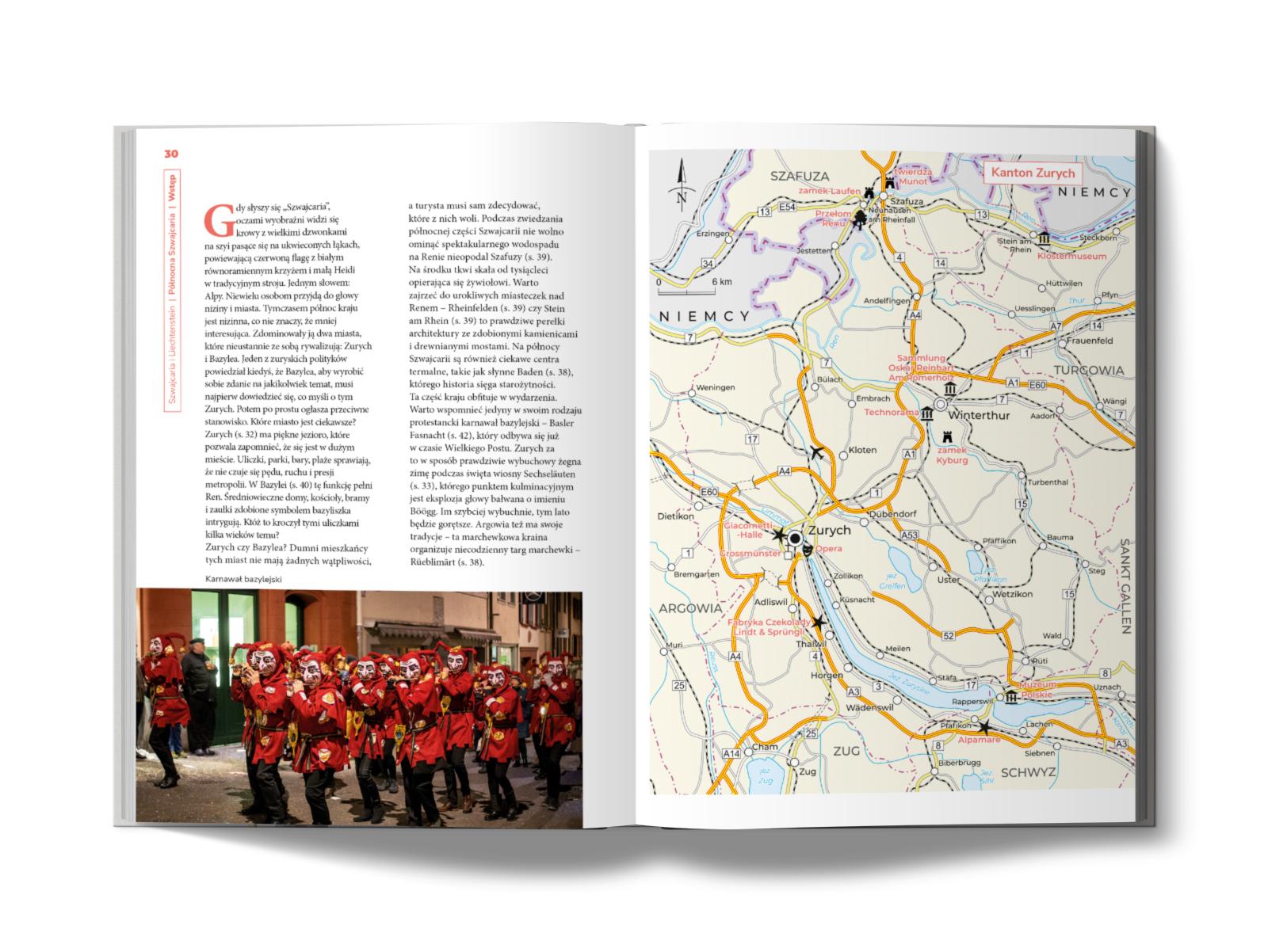 Wspólnie z Joanną Lampką opracowaliśmy przewodnik po kraju niezawodnych zegarków i wysokich gór. Znajdziesz w nim rankingi atrakcji i rekomendacje autorki, knajpki polecane przez miejscowych, intuicyjną nawigację, a do wszystkich wyjątkowych miejsc doprowadzi cię rozkładana mapa. Dzięki naszym wskazówkom dowiesz się, jak uzyskać zniżki (np. na bilety) na miejscu.