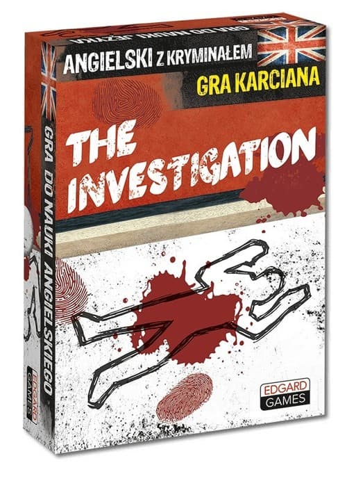 Rozwiązuj zagadki kryminalne i mów po angielsku! Angielski. Gra The Investigation to kryminalna gra karciana, skierowana do osób znających podstawy języka angielskiego oraz średnio zaawansowanych (A2-B2+), które chcą doskonalić umiejętności językowe w sposób niekonwencjonalny. Gra zawiera talię 110 kart, przy pomocy których gracze układają historię przestępstwa i próbują rozwikłać kryminalne zagadki, szlifując jednocześnie angielski. Rozwiązuj detektywistyczne łamigłówki i trenuj swobodne mówienie po angielsku! Z grą The Investigation przećwiczysz ponad 500 słówek i wyrażeń, nauczysz się szybkiego konstruowania wypowiedzi i utrwalisz struktury leksykalno-gramatyczne w kontekście! I to w sposób najbardziej sprzyjający zapamiętywaniu – podczas emocjonującej rozgrywki! Lubisz niebanalne formy przyswajania wiedzy? Jesteś miłośnikiem gier karcianych, zagadek i mrożących krew w żyłach opowieści? Kryminalna gra karciana do nauki angielskiego jest dla ciebie! Do jej rozegrania wystarczy 2 graczy! Twoim zadaniem jest doprowadzić śledztwo do końca, przeprowadzając je w całości w języku angielskim. Podziel się z przyjaciółmi rolami Świadka i Śledczych, odtwarzajcie bieg wydarzeń, dopytujcie, dyskutujcie, drążcie temat nie poprzestając na pierwszych wskazówkach! The Investigation to: gra towarzyska dla minimum 2 osób talia 110 kart wciągająca rozrywka, w której uczestnicy mają wspólny cel: rozwikłać zagadkę zbrodni trening struktur leksykalno-gramatycznych w kontekście doskonalenie mówienia – ponad 500 słówek i zwrotów