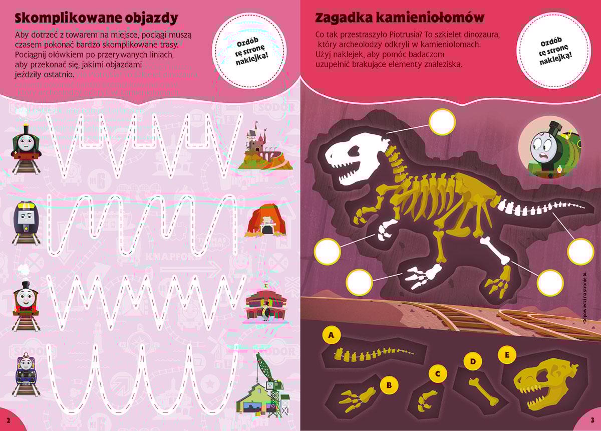 Nowe 100 naklejek to propozycja dla dzieci, które zaczynają dopiero swą przygodę z książkami aktywnościowymi. Zawarte tu łamigłówki są proste i zostały opracowane tak, aby pomóc w kształtowaniu różnych talentów malucha. W książce znalazły się zarówno zadania wymagające spostrzegawczości czy umiejętności liczenia na podstawowym poziomie, jak i ćwiczenia rozwijające kreatywność, zmysł plastyczny i zdolności manualne. Na końcu umieszczono odpowiedzi do wybranych zadań, dzięki czemu w zabawie z łamigłówkami rodzica może zastąpić na przykład starsze rodzeństwo. Uzupełnieniem łamigłówek są atrakcyjne naklejki – część przyda się do rozwiązywania zadań, a część można nakleić w dowolnym miejscu, dekorując w ten sposób zeszyt, piórnik czy kartkę urodzinową dla bliskiej osoby. Towarzystwo ulubionych bohaterów znanych z uwielbianej przez dzieci kreskówki Tomek i przyjaciele zachęci do zabawy, a gdy wszystkie łamigłówki zostaną już rozwiązane, warto sięgnąć po pozostałe książki z serii. Czekają w nich bohaterowie innych seriali dla najmłodszych!