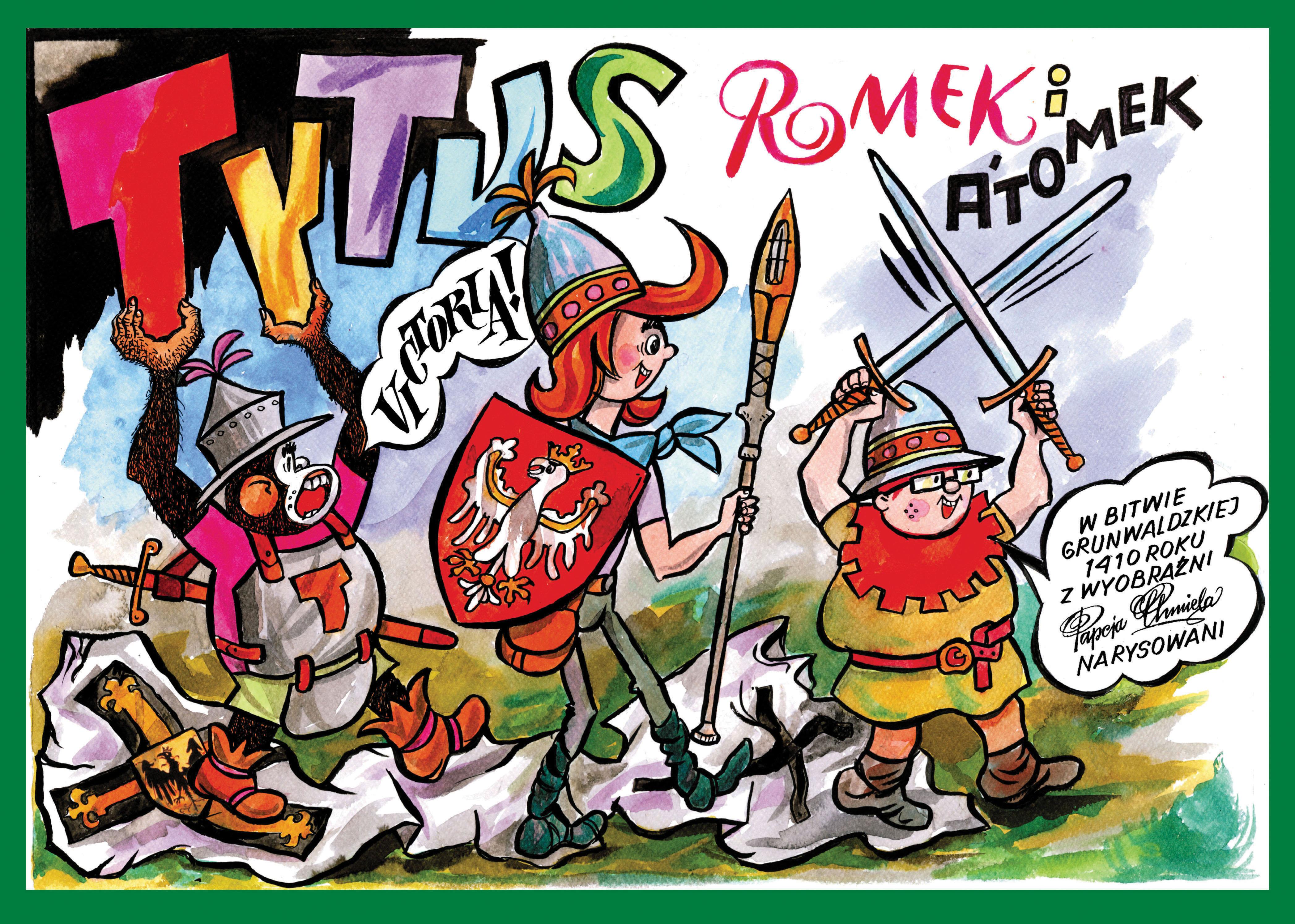 Najnowszy album mistrza polskiego komiksu – Papcia Chmiela – o tematyce historycznej. Tym razem Tytus, Romek i A’Tomek zostają oddelegowani przez Papcia, by rozprawić się z zakonem krzyżackim na polach grunwaldzkich AD 1410. Trójka kochanych przez miliony czytelników bohaterów w znaczący sposób przyczynia się do zwycięstwa w największej bitwie średniowiecza.