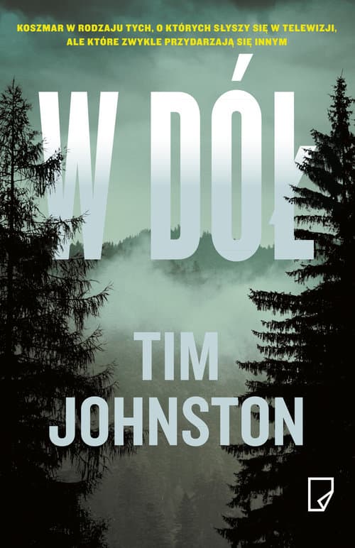 Błyskotliwy thriller o więzach krwi i walce o przetrwanie. Koniec wakacji, Courtlandowie przyjeżdżają w Góry Skaliste. Dla ich córki, osiemnastoletniej Caitlin, góry mają być ostatecznym sprawdzianem biegowym. Jej rodzice liczą na to, że wspólny urlop pomoże im posklejać związek. Pierwszego ranka Caitlin i jej młodszy brat Sean idą pobiegać. Kilka godzin później z telefonu Seana dzwoni szeryf. Chłopak leży w szpitalu, ma pogruchotaną nogę, ale już odzyskał przytomność, jego życiu nic nie grozi. A Caitlin? Caitlin zniknęła. Zaczyna się koszmar w rodzaju tych, o których słyszy się w telewizji, ale które zwykle przydarzają się innym. Poszukiwania, wzajemne oskarżenia, pytania bez odpowiedzi. Co się stało? Czy mogli temu zapobiec? Czy Caitlin żyje? Czy kiedykolwiek się tego dowiedzą? Tajemnicze zniknięcie dziewczyny stanie się początkiem strasznej podróży po coraz bardziej splątanych ścieżkach. Wkrótce Courtlandów będzie łączyło już tylko pytanie, którego nigdy nie zdołają zadać na głos: Kiedy przestać szukać? Perfekcyjnie skrojony thriller, napisany z precyzją, która pozwala uchwycić każdą emocję, każdą chwilę strachu i każdą potworną myśl, pędzący jak lawina ku przerażającemu rozwiązaniu. Poetycki i hipnotyczny thriller pierwszej jakości. Wspaniale napisana, prowokująca do myślenia i niepokojąca powieść o rodzinie, przetrwaniu i sile woli. Trzyma w napięciu i nie daje się zapomnieć. Lisa Unger Tim Johnston – amerykański pisarz i nauczyciel kreatywnego pisania. Oprócz W dół ma na koncie powieść dla młodzieży Never So Green (2002) i zbiór opowiadań Irish Girl (2009). Tytułowe opowiadanie z Irish Girl zostało wyróżnione O. Henry Prize, New Letters Award for Writers i Gival Press Short Story Award, a cały zbiór nagrodzono Katherine Anne Porter Prize in Short Fiction. Opowiadania Johnstona ukazywały się także w „New England Review”, „New Letters”, „The Iowa Review”, „The Missouri Review”, „Double Take”, „Best Life Magazine” i „Narrative Magazine”.