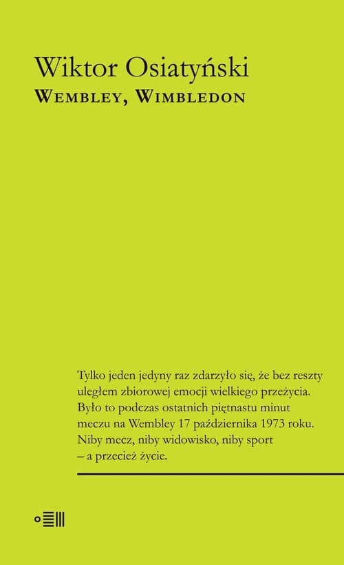 Niewielu z nas pamięta, że Wiktor Osiatyński – prawnik, konstytucjonalista, działacz społeczny i zaangażowany w obronę praw człowieka publicysta – wcielił się w swoim życiu również w rolę reportera sportowego. W 1973 roku jako korespondent „Kultury” był świadkiem sukcesu piłkarzy Kazimierza Górskiego w starciu z reprezentacją Anglii, a w 1979 roku opisywał mecze tenisa rozgrywane na murawach Wimbledonu. Po co wznawiać teksty sportowe sprzed ponad czterdziestu lat? Bo dobry reportaż jest o tym, o czym jest, ale jest również o czymś więcej. Dzisiaj nie szukamy już w tych historiach wyników spotkań sportowych. Czytamy je jako uniwersalne opowieści o ludzkich słabościach i o ludzkiej sile, o emocjach – pragnieniach, nadziejach, lękach. Wrażliwy erudyta, jakim był Osiatyński, patrząc na sportowców, nie widział koszulek reprezentacji narodowych ani nawet dobrego uderzeniach z podbicia czy mocnego serwisu, widział – człowieka. Michał Okoński, sam będący dziennikarzem sportowym, wyznał we wstępie do książki: „Nikt nie pisał o sporcie tak jak Osiatyński. I pewnie dlatego, że w gruncie rzeczy nie o sporcie on pisał, a o ludzkich sprawach, jego pisanie przetrwało”.