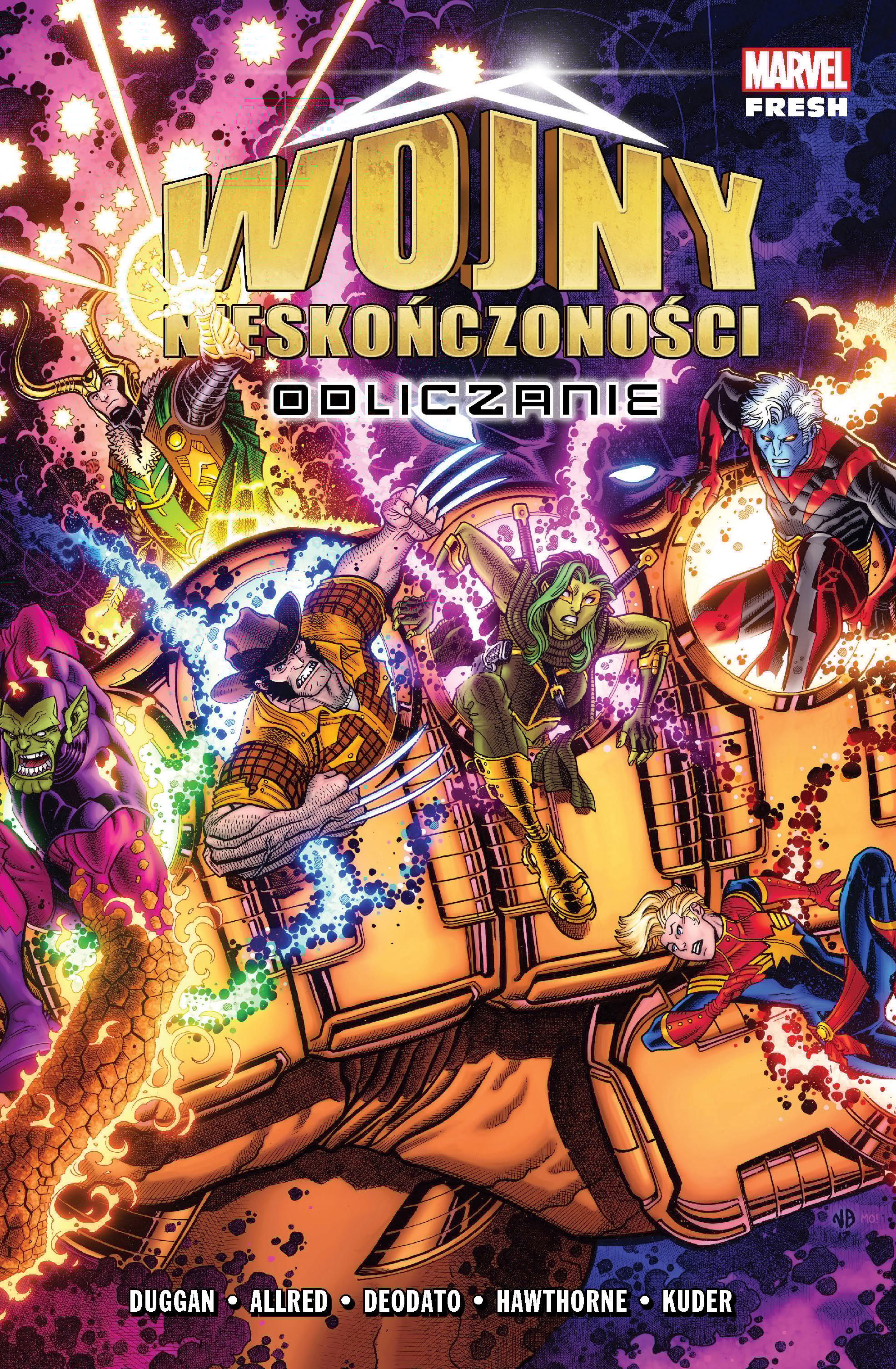 Kamienie Nieskończoności powróciły. Każdy, kto posiądzie choć jeden, zyska niebywałą moc, a ten, kto zbierze wszystkie, zostanie bogiem! Nikt jednak nie wie, gdzie się znajdują, więc najwięksi bohaterowie i najwredniejsi złoczyńcy uniwersum Marvela wyruszają na ich poszukiwanie. Pierwsza bitwa rozegra się o Kamień Mocy. Kolejne… mogą pogrążyć wszechświat na zawsze! Czy Strażnicy Galaktyki zdołają w porę zakończyć ten szalony wyścig? I jakie role odegrają Adam Warlock, pewien podróżujący w czasie arcyłotr oraz… odrodzony Wolverine? Oto pierwszy album z nowej linii wydawniczej Marvel Fresh, która zastąpi Marvel NOW! 2.0 i w której będą się odtąd ukazywały najnowsze komiksy z wydawnictwa Marvel. Album „Wojny nieskończoności: Odliczanie” oraz jego kontynuacja „Wojny nieskończoności” łączą obie te linie wydawnicze – zamykają wątki ze „Strażników Galaktyki” (Marvel NOW! 2.0), a jednocześnie przygotowują uniwersum Marvela i jego bohaterów na kolejne przygody, które zobaczymy już w Marvel Fresh. Scenariusz „Wojen nieskończoności: Odliczania” napisał Gerry Duggan, autor znany z serii „Deadpool” i „Strażnicy Galaktyki”. Rysunki stworzyli Michael Allred i Laura Allred („Silver Surfer”), Mike Deodato Jr. („Grzech pierworodny”, „Niezwyciężony Iron Man”), Mike Hawthorne („Deadpool”) oraz Aaron Kuder („Strażnicy Galaktyki”). Album zawiera zeszyty: „Infinity Countdown: Adam Warlock” #1, „Infinity Countdown Prime” #1 i „Infinity Countdown” #1–5.