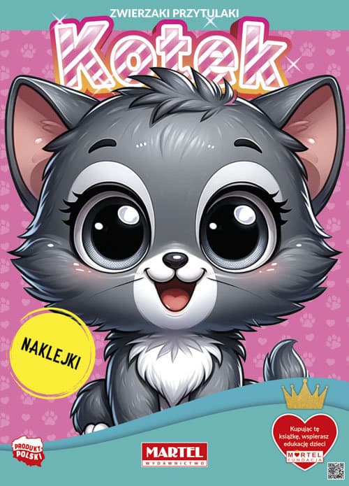 „Zwierzaki przytulaki. Kotek” to wspaniała kolorowanka dla wszystkich miłośników miauczących czworonogów. Na 16 stronach znajdziesz mnóstwo uroczych kotków, które tylko czekają na to, by dodać im kolorów za pomocą kredek lub flamastrów. Do książeczki dołączone są także fantastyczne naklejki, które dodatkowo urozmaicą zabawę. To idealna propozycja dla małych artystów i miłośników kotów, którzy chcą rozwijać swoją kreatywność i wyobraźnię.